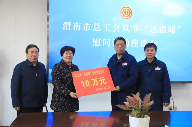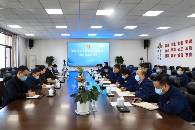 1月18日,渭南市總工會黨組書記、常務副主席侯雪靜,韓城市總工會常務副主席李養義一行來公司“送溫暖”,并召開座談會。公司黨委副書記、總經理李都宏,黨委委員、工會主席趙春棠,各基層工會主席、相關部門負責同志參會。